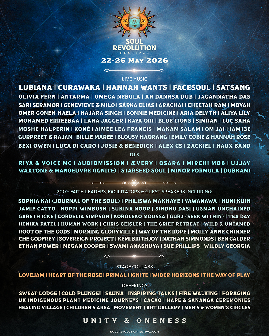 It’s here! Our lineup for 2026 has landed. Scroll below to see the music artists, DJs, faith leaders, facilitators and guest speakers who will co-create the magic of Soul Revolution Festival in May.